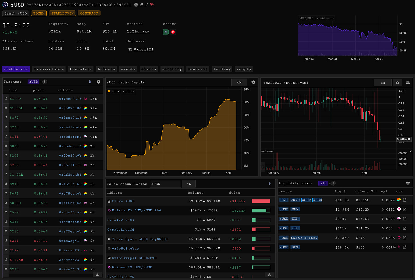 The SNX team have been consistent with their messaging that this is part of a transition and that they’re standing up new demand sinks (integrations with Aave and Ethena etc.) and reinforcing Curve incentives. The peg still matters — even if it’s not quite being defended in the same way.